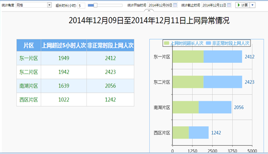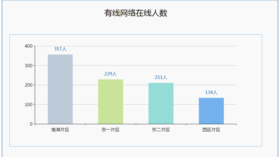 該部分只有柱狀圖展現(xiàn)在線人數(shù),柱子滿足維度下鉆至樓棟。該部分?jǐn)?shù)據(jù)直接來(lái)自中間視圖表,數(shù)據(jù)每隔一分鐘更新一次,用計(jì)劃任調(diào)用后臺(tái)etl過(guò)程更新數(shù)據(jù)。報(bào)表也每隔一分鐘重新自動(dòng)計(jì)算一次。從而達(dá)到網(wǎng)絡(luò)在線實(shí)時(shí)情況展現(xiàn)這一目標(biāo)。