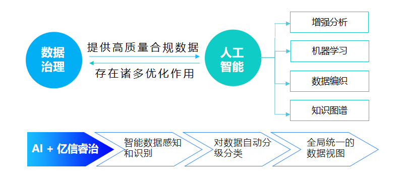 進入21世紀20年代,人工智能經過20余年的蓬勃發展,迎來爆發式增長的新高潮。億信華辰一直進行智能化技術的探索,幫助提升數據分析與數據治理效率,解放人工。億信ABI作為全新一代智能數據處理分析平臺,分階段有步驟的實施AI布局,通過程序自動化、ML機器學習和深度學習等大數據能力,規劃了智問、智讀、智算三步遞進策略,打造出一個會思考、能說話、有決策的BI系統,助力走向ABI的最佳實踐。在數據治理方面,睿治數據治理平臺不斷融合AI新技術,力求通過智能化管理來簡化數據治理實施過程,目前可實現“智規”、“智檢”、“智盤”、“智問”。
