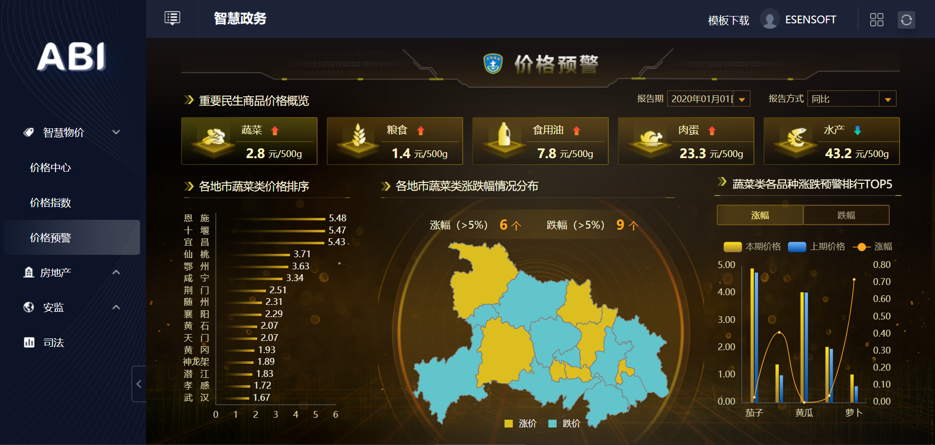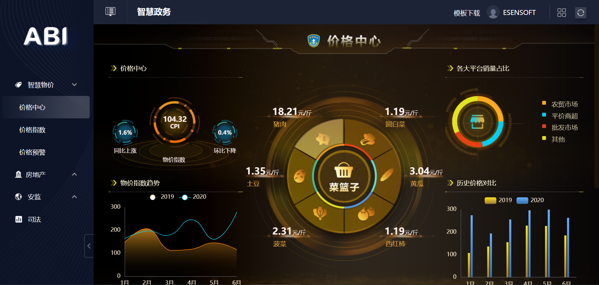 3.智慧政務大數據平臺BI系統-菜籃子價格監控中心