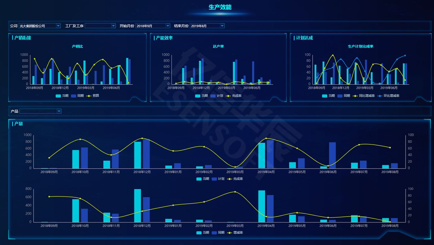 反映生產(chǎn)部門生產(chǎn)進(jìn)度執(zhí)行情況,考核生產(chǎn)部門的生產(chǎn)能力。涵蓋產(chǎn)量、產(chǎn)銷比、達(dá)產(chǎn)率、生產(chǎn)計(jì)劃完成率等考核指標(biāo),為領(lǐng)導(dǎo)管理生產(chǎn)線提供數(shù)據(jù)支撐。