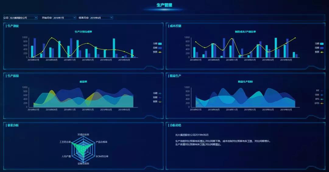 下圖是用億信ABI搭建的生產(chǎn)數(shù)據(jù)分析平臺,都是用于實際生產(chǎn)的可視化報表。