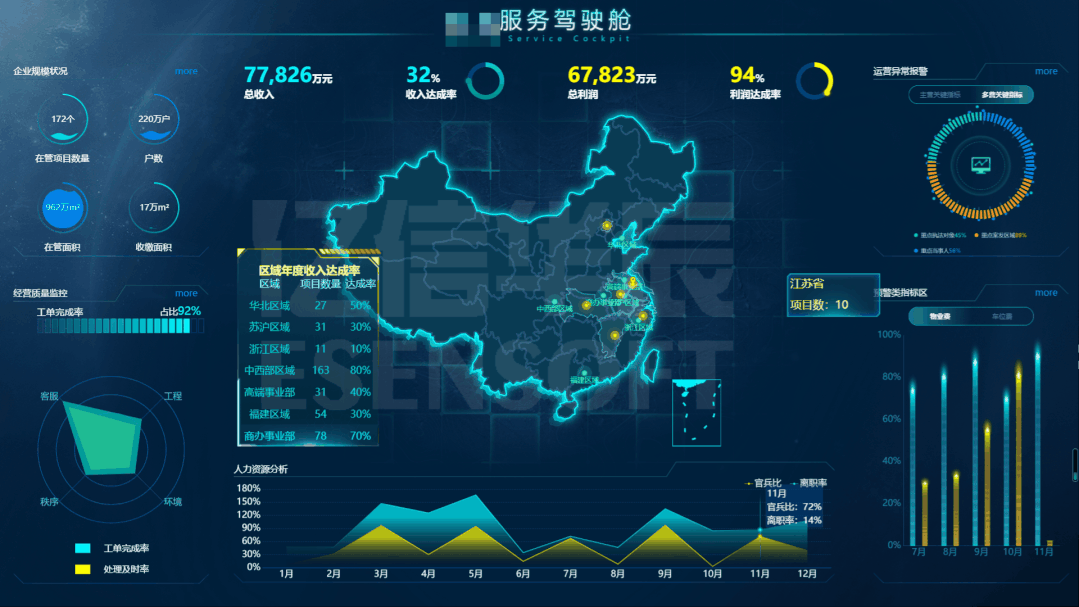 展示各省某指標(biāo)的情況,通過(guò)點(diǎn)擊地圖上的區(qū)域從而聯(lián)動(dòng)各個(gè)省的指標(biāo)數(shù)據(jù)。效果如下:
