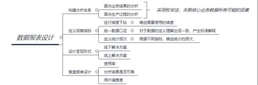 維度細化的過程中,可能會逐漸拆分為一級指標(biāo)、二級指標(biāo)……n級指標(biāo),但并非拆分中的每一個維度都要作為觀察指標(biāo)。是否作為報表使用要結(jié)合公司業(yè)務(wù)特點并且和業(yè)務(wù)部門多次溝通協(xié)調(diào)達成共識。